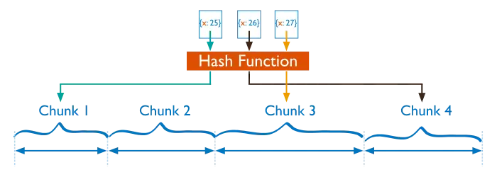 哈希分片是对shard key的值进行哈希运算后进行分片。每个chunk基于哈希后的值进行分配。