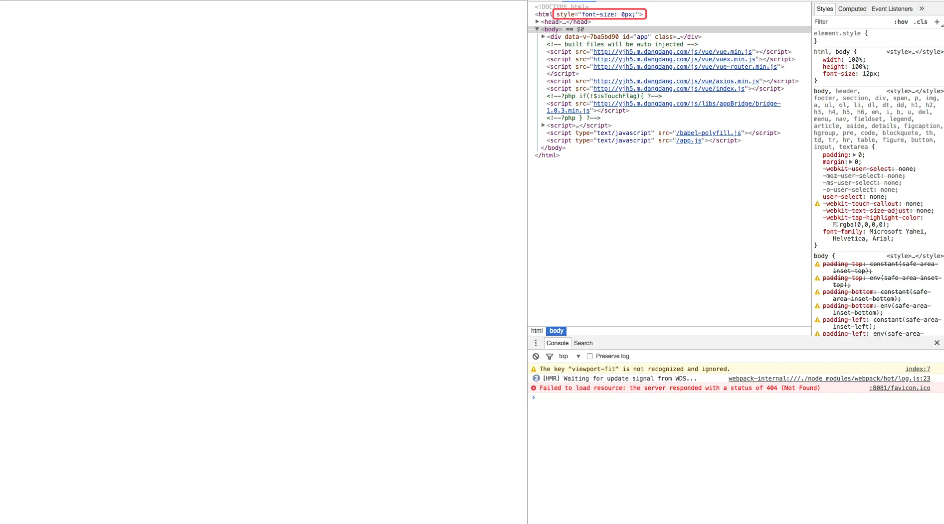 改完之后和原来一样。这就有意思了,rem不生效,再回来看调试上的element各个节点,确实样式也都对应上了,就是高度都为0了。什么情况?什么情况?