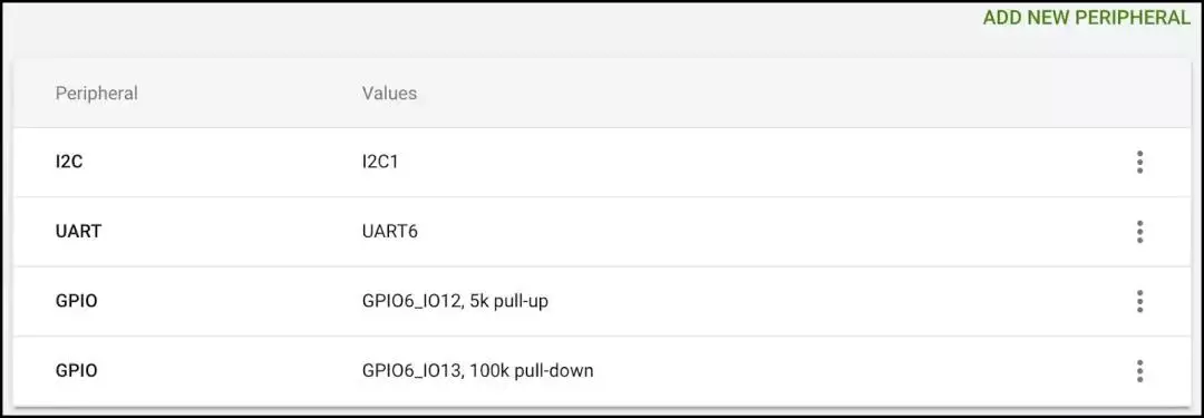 Android Things 控制台包含一个新的硬件外设配置界面,让开发者可以在构建时控制可用的外设 I/O 连接和 GPIO 电阻器与 I2C 总线速度等设备属性。此功能将在未来版本中继续扩展,包含更多外围硬件配置。