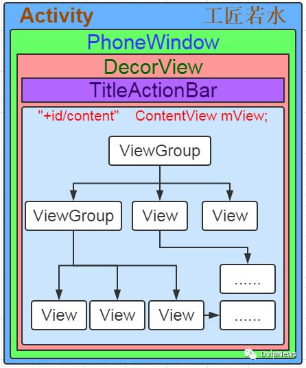 Window是一块电子屏,PhoneWindow是一块手机电子屏,DecorView就是电子屏要显示的内容,Activity就是手机电子屏安装位置。