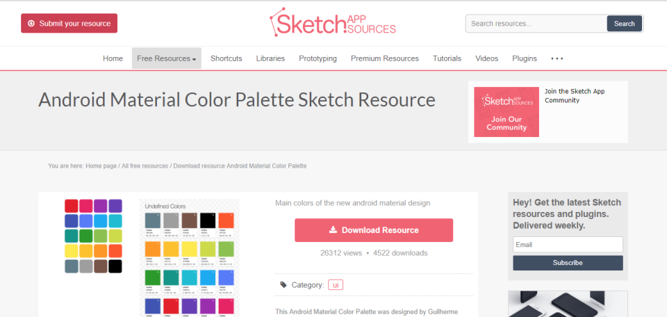 这个网站提供各种设计相关的免费资源下载。你可以在这里找到安卓材料设计的调色板资源并且可以免费下载。