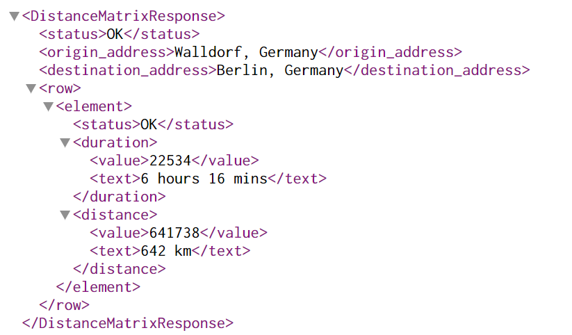以Internet Service http://maps.googleapis.com/maps/api/distancematrix/xml?origins=Walldorf&destinations=Berlin为例,