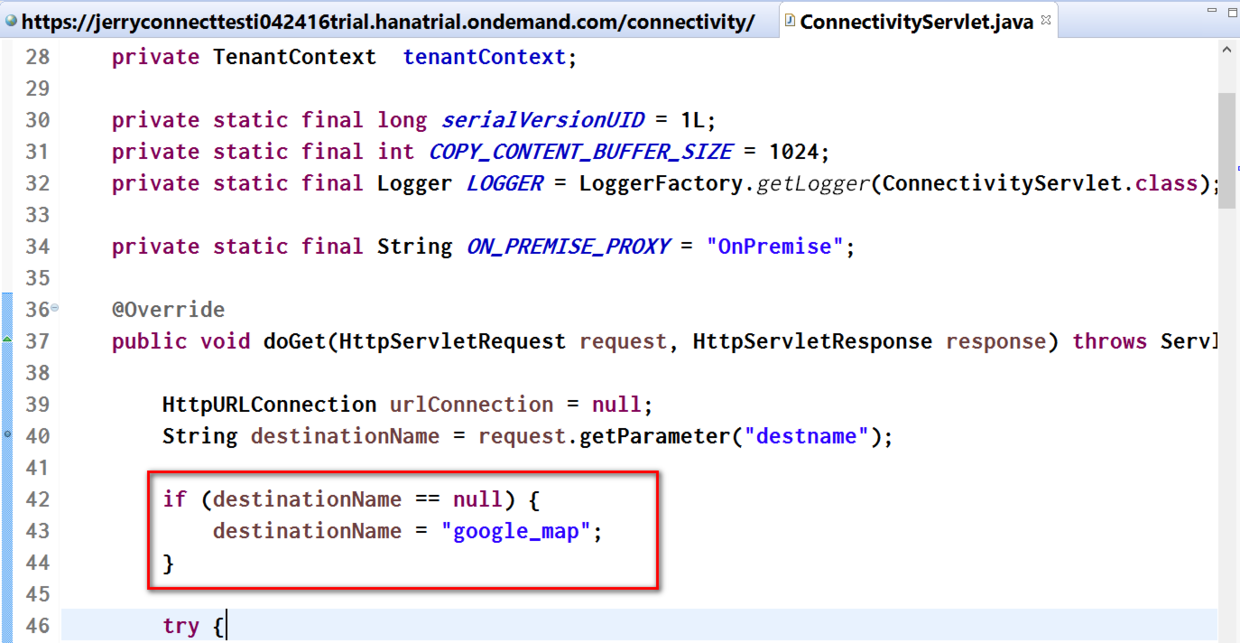 <servlet-class>com.sap.cloud.sample.connectivity.ConnectivityServlet</servlet-class>