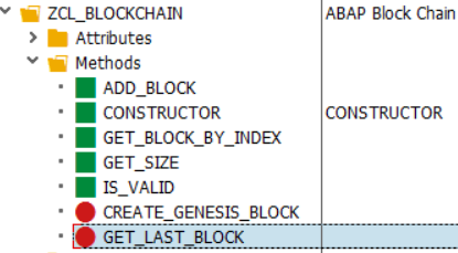 区块的ABAP实现:ZCL_BLOCK。上图所示的字段都建模在这个类里,出于简单起见,大部分字段设置为public。