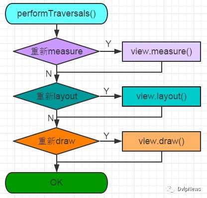 整个View树的绘图流程是在ViewRootImpl类的performTraversals()方法(这个方法巨长)开始的,该函数做的执行过程主要是根据之前设置的状态,判断是否重新计算视图大小(measure)、是否重新放置视图的位置(layout)、以及是否重绘 (draw),其核心也就是通过判断来选择顺序执行这三个方法中的哪个,如下: