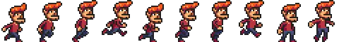 前面展示过的走路的特征将会被用来代替玩家。绘制它的代码需要根据玩家的当前动作选择正确的动作和方向。前 8 个子画面包含一个走路的动画。当玩家沿着地板移动时,我们根据当前时间把他围起来。我们希望每 60 毫秒切换一次帧,所以时间先除以 60。当玩家站立不动时,我们画出第九张子画面。当竖直方向的速度不为 0,从而被判断为跳跃时,我们使用第 10 张,也是最右边的子画面。