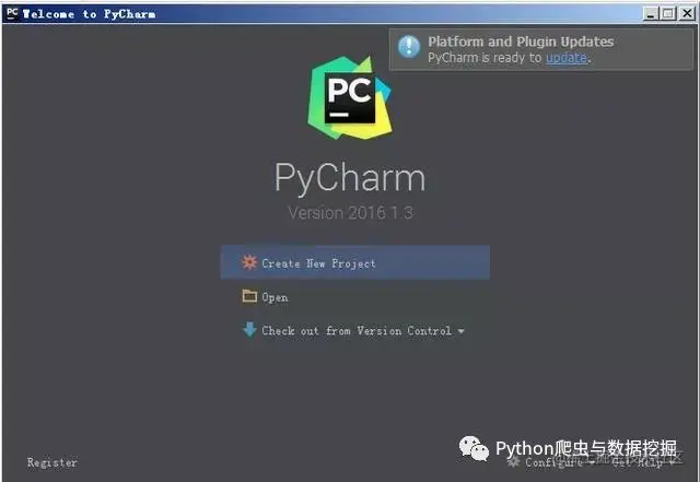 9、点击Finish,Pycharm安装完成。接下来对Pycharm进行配置,双击运行桌面上的Pycharm图标,进入下图界面: