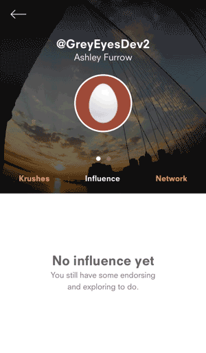Krush的用户信息是一个复杂的东西。不管是从设计的角度还是从编码的角度来看,正确的处理是很重要的。我们看到的设计中有三个tab:Krushes,Influence和Network。