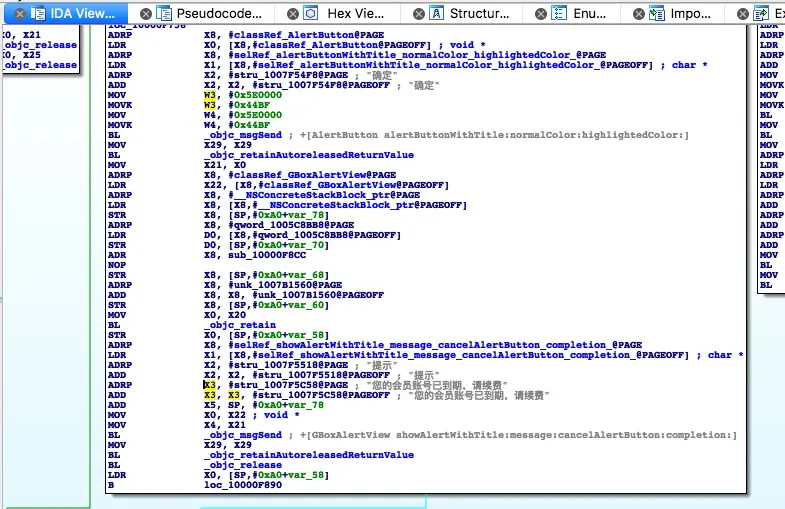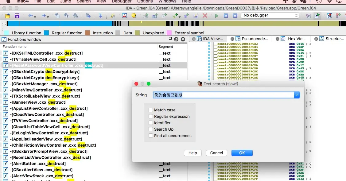 把件IPA文件(经过3秒的思想斗争。最终决定还是不放链接了,想研究的加我V信:yuzhouheikewll)扔到IDA里面
