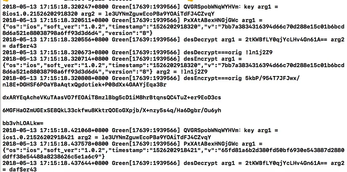 NSLog(@"desDecrypt arg1 = %@ arg2 = %@", arg1, arg2 );