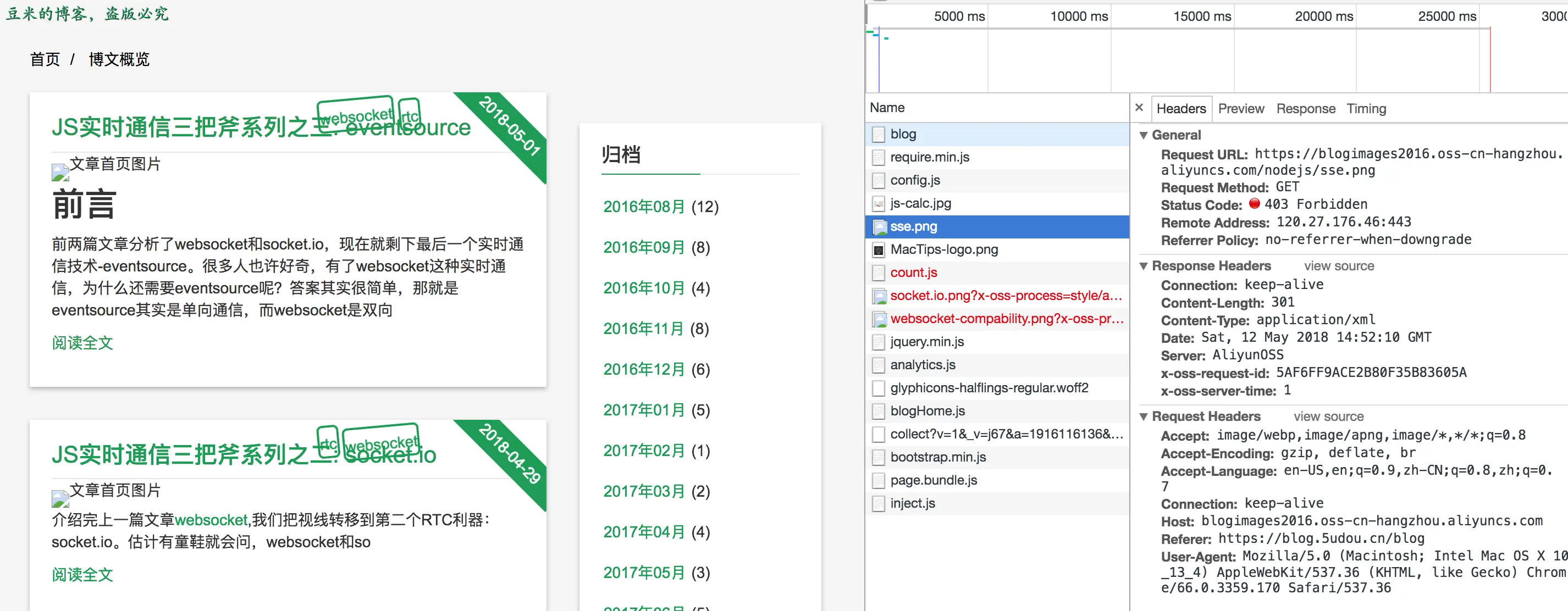第二个问题是因为我在阿里云那边配置了防盗链,只需要上去更新域名即可。