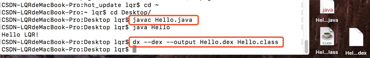 dx --dex -- output Hello.dex Hello.class