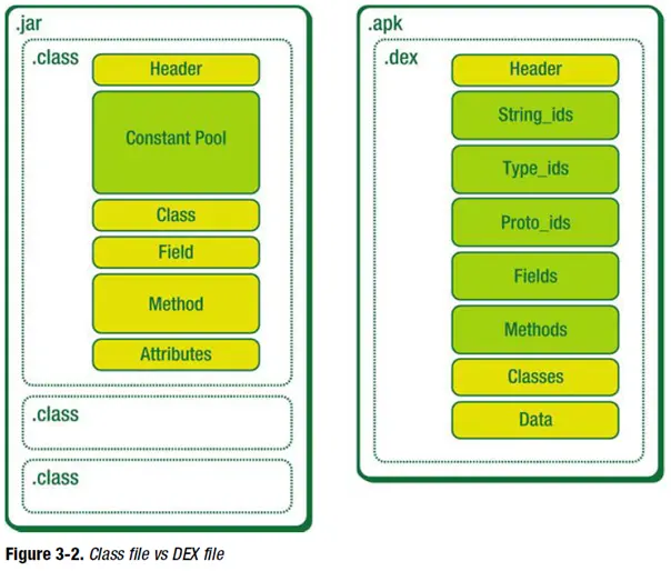 | 定义 | 能够被jvm识别、加载并执行的文件格式 | 能够被dvm识别、加载并执行的文件格式 |