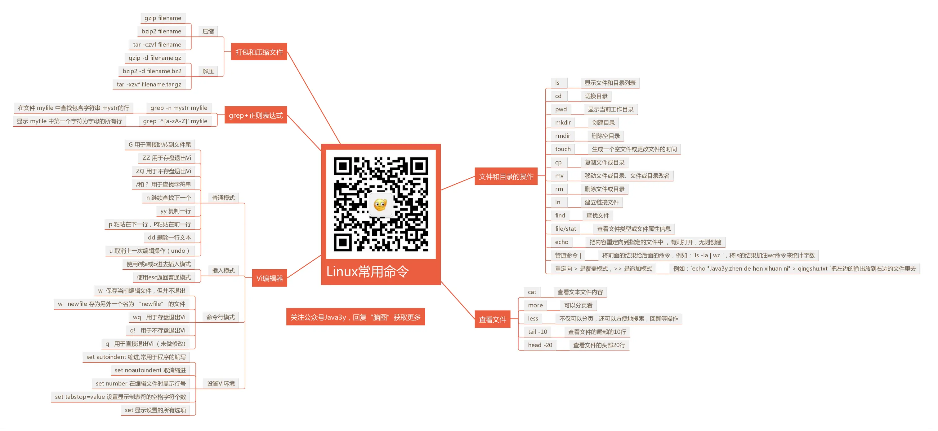 下面我就花点时间画个Linux命令的脑图(当然了,命令仅限于是本文章的知识点,等写到用户、网络等知识点的时候再继续补充上去!)