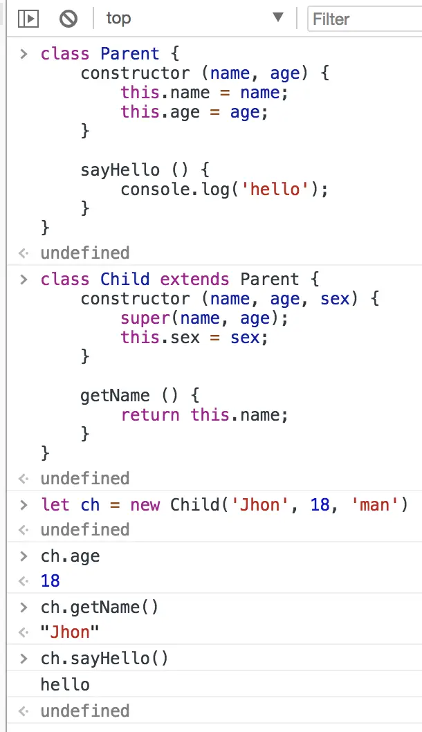 ES6中引入了class的概念,而使用 extends 关键字可以很方便的实现class之间的继承