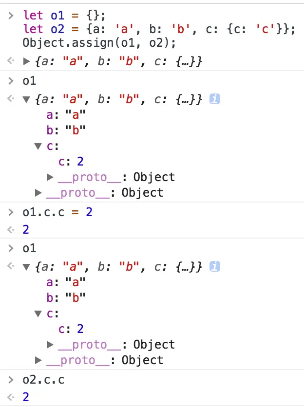 let o2 = {a: 'a', b: 'b', c: {c: 'c'}};