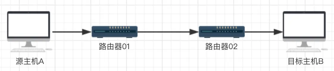 来个简单的图例。假设源主机A到目标主机B之间有2个中间节点,也就是说,A到B一共需要经过3跳。那么,traceroute的检测时序如下: