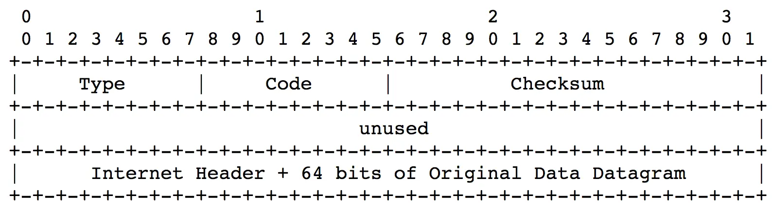 - Code字段:子类型。比如,导致目标主机不可达错误的原因可能有多种,比如主机错误(code=1),端口错误(code=3)等。