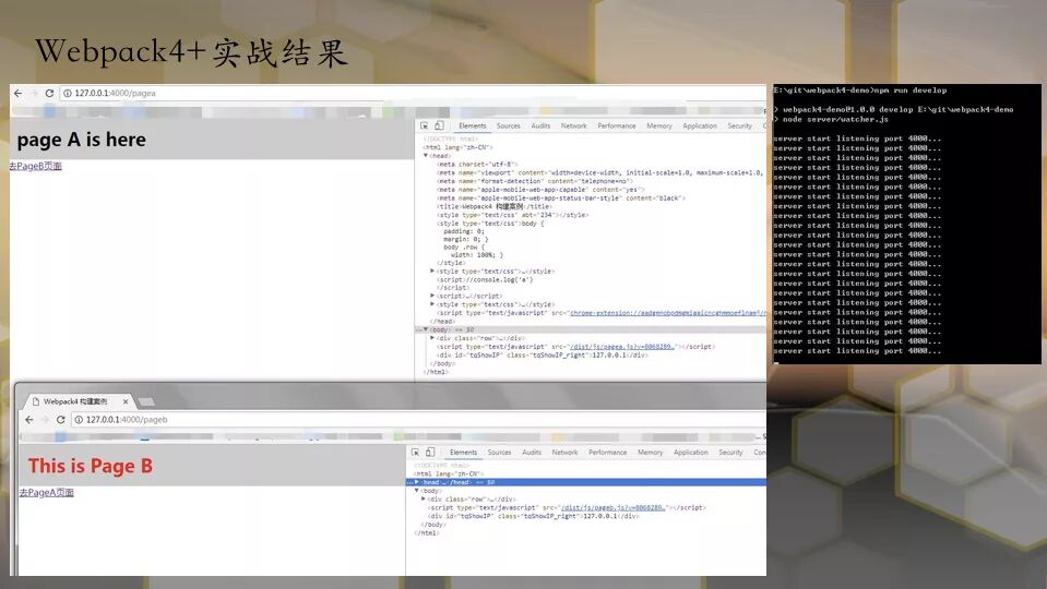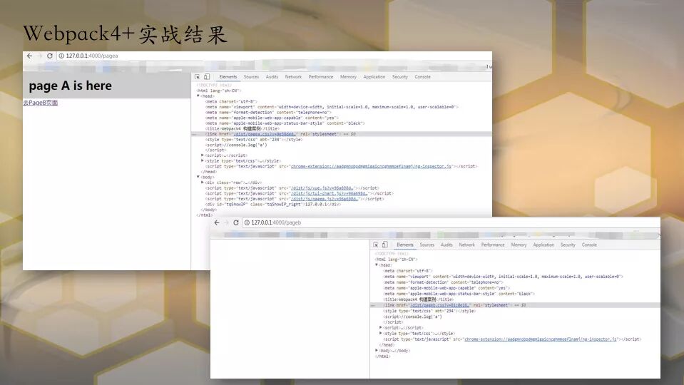 可以看到,通过webpack打包编译,生成了我们想要的pagea.html和pageb.html。并且js文件注入正常。