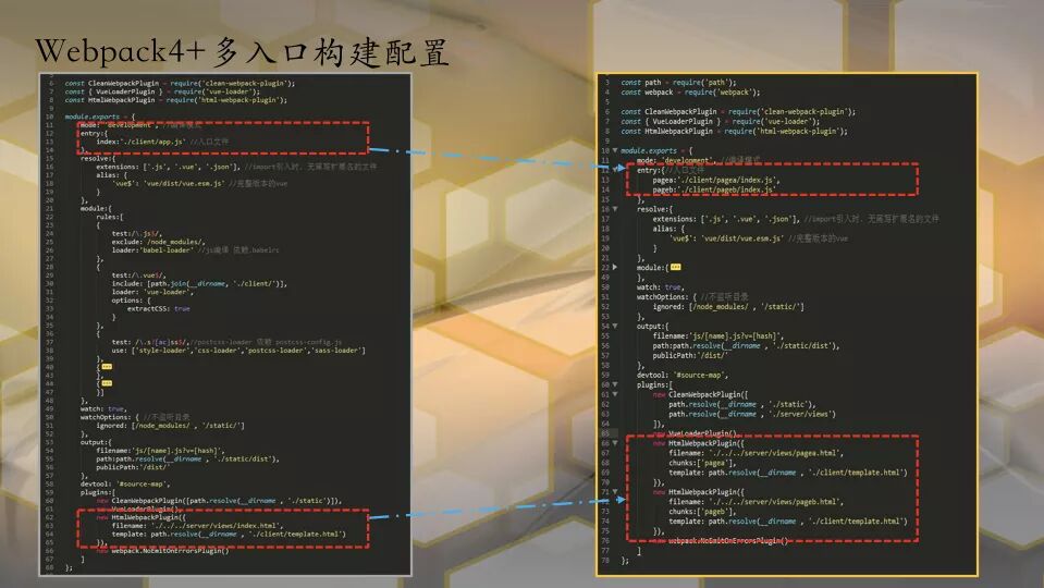 如图,可以看到多入口配置,超级简单在entry添加对应模块入口即可。