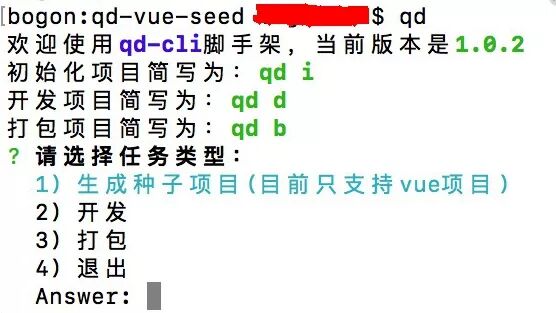 到这里就差不多了,接下来需要将使用webpack搭建的工作流集成成cli,这样做的好处一是可以通过命令行去开发以及构建,同时,可以发布npm社区后,只需一次安装即可,即可多次使用,因为qd-cli内内置vue,vuex,vue-router,axios,jsonp,ramda,jquery等模块,无需二次安装,大大减少了项目体积,简要说明集成成cli是怎么做到以及一些注意点