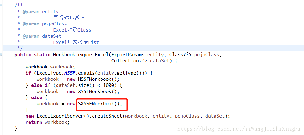 当数据量超过1000条时就会调用SXSSFWorkbook方法,从而解决了海量的数据导出会发生内存溢出的问题。