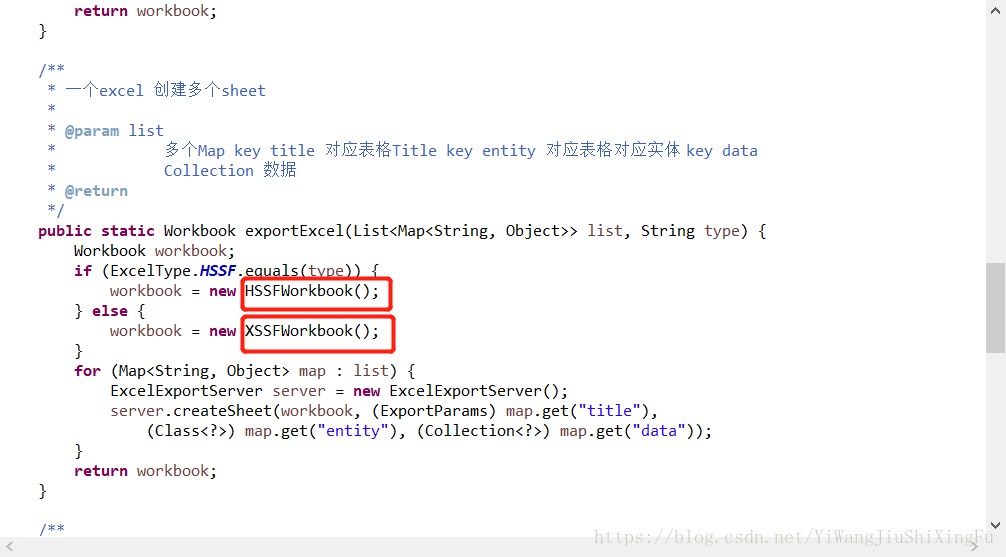 最开始调用的方法是(标记的地方): workbook = new HSSFWorkbook();和 workbook = new XSSFWorkbook();
