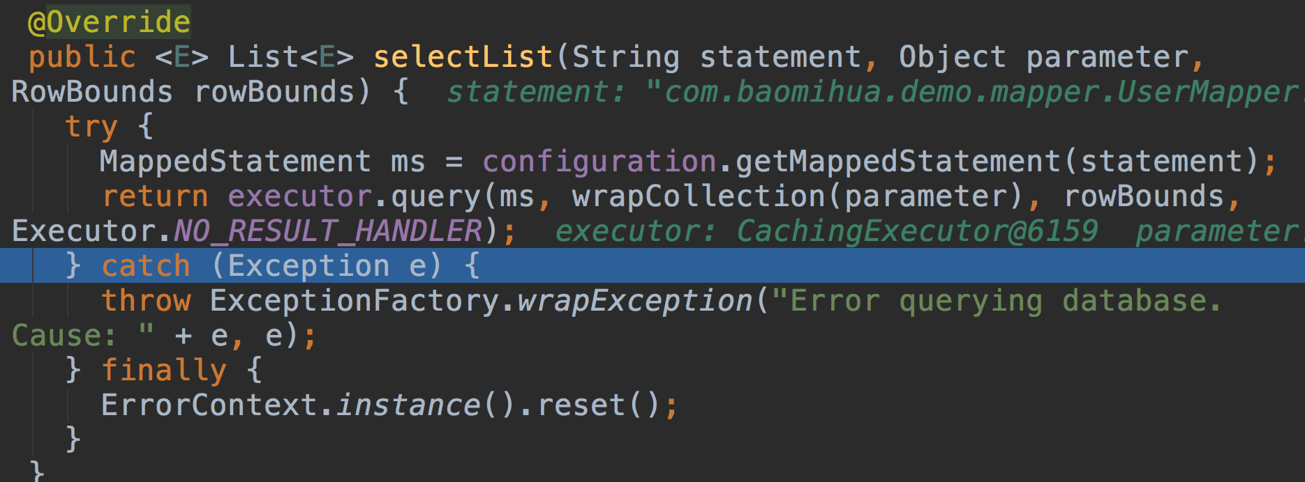 上面这段代码是MapperRegistry这个类中注册的Mapper的代理工厂,如果对于Mapper的加载过程不清楚的,可以看之前分析的
