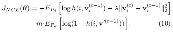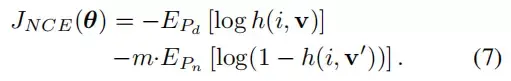 我们估测的训练目标是最小化数据样本和噪声样本的负对数似然分布: