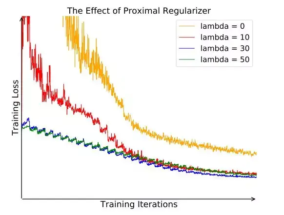 随着学习收敛,不同迭代之间的差距逐渐消失,增加的损失减少至最原始的一个。通过近段正则化,我们最终的目标函数变为: