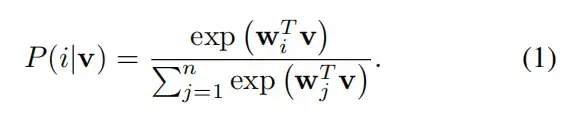 其中 wj 是类别 j 的权重向量,wTv 衡量 v 与 j 类实例的匹配程度。