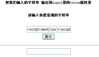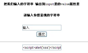 这段代码的作用是把第一个输入框的字符串,输出到第二个输入框,我们输入1,那么第二个input里的value值就是1,下面是页面的截图和源代码的截图(这里我输入下面的代码来测试)