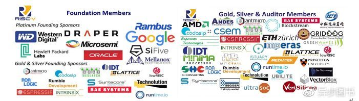 图2 RISC-V基金会创始会员,铂金、金、银级会员图谱