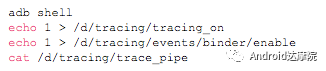 这个问题的复杂在于,即便找到了第一个案发现场以及复现路径,要完全理解中间的每一次协议转换过程,也是比较复杂的。 通过如下命令打开binder driver的ftrace信息,用于输出每次binder通信协议与数据。