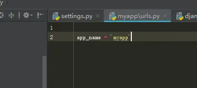 8.在myapp目录下添加一个urls.py文件,用于配置myapp内部的访问路径,并在文件开始加上一句app_name='myapp',算是一个namespacing