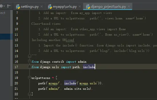 9.在django_project目录的urls.py中添加myapp模块的urls配置信息
