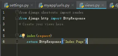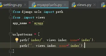 10.配置myapp下的urls.py,建立urls和views之间的映射关系,这里简单的以一个首页为例
