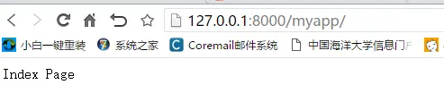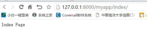 11.runserver启动服务器,然后打开浏览器输入127.0.0.1:8000/myapp或者127.0.0.1:8000/myapp/index进入首页