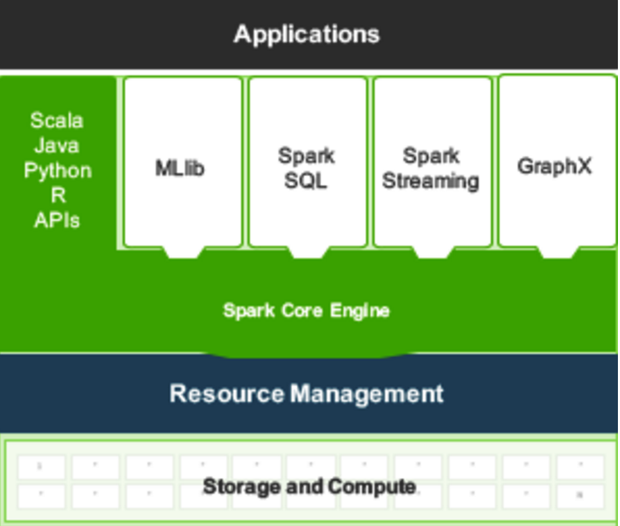 - SPARK:作为一个在系统中处于核心地位的应用程序,它是一个与 HDFS 和其他 NoSQL DB 兼容的批处理引擎。它能比 Hadoop / MapReduce 快 10 倍到 100 倍,因此它十分流行。