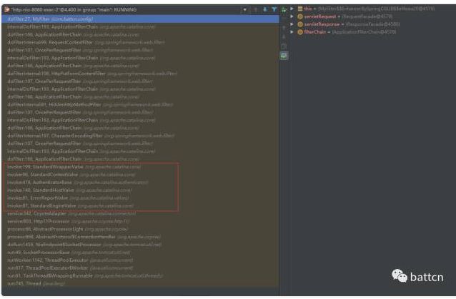 // 此处调用Filter的doFilter()方法 / 而 doFilter 又会调用 internalDoFilter 直到调用完所有的过滤器