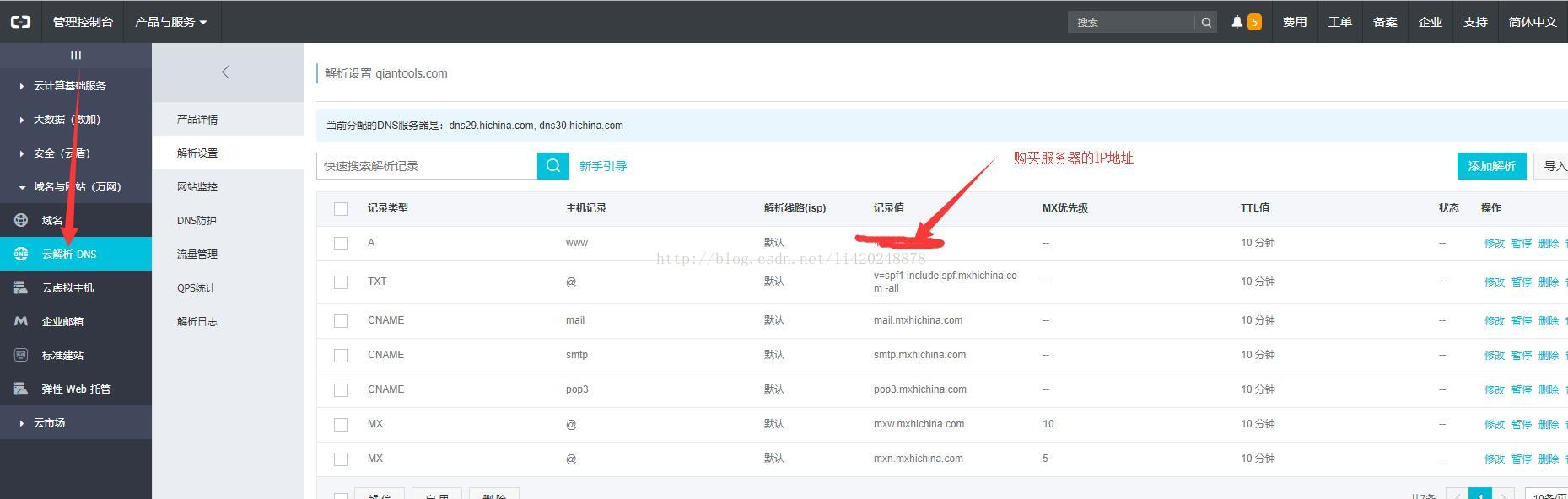 域名购买后,添加域名解析到前面购买的服务器IP地址上,然后需要申请ssl证书(博主实在阿里云上免费申请的,但是好像现在找不到了,不确定,大家也可以百度下第三方申请)