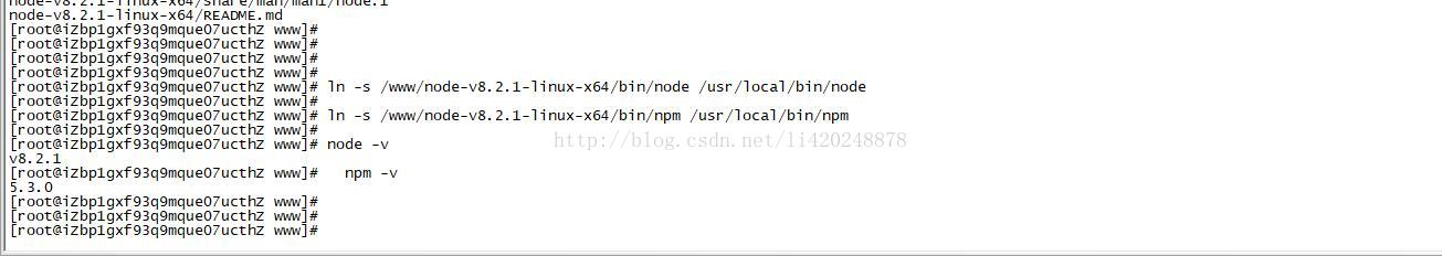 ln -s /www/node-v8.2.1-linux-x64/bin/npm /usr/local/bin/npm