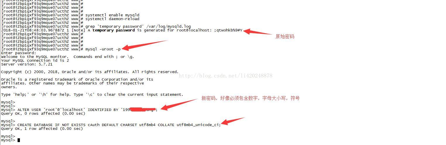 mysql安装完成之后,在/var/log/mysqld.log文件中给root生成了一个默认密码。通过下面的方式找到root默认密码,然后登录mysql进行修改: