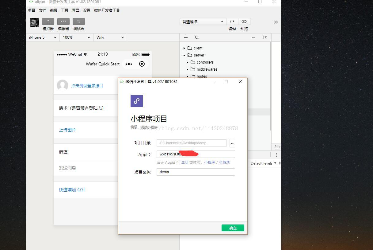 最近微信小程序异常火爆,很多人在学习,下面带着大家搭建下微信小程序的调试环境(client+server),并调试一套demo源码(JavaScript和node.js基础即可,微信推荐使用的语言,无前端编程基础,去菜鸟教程简单学习下 JavaScript,node.js,mysql即可),方便大家学习。