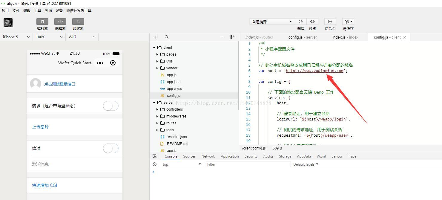 编辑server中的config.js(先在服务器上创建一下目录/data/release/weapp,也就是下面的rootPathname)
