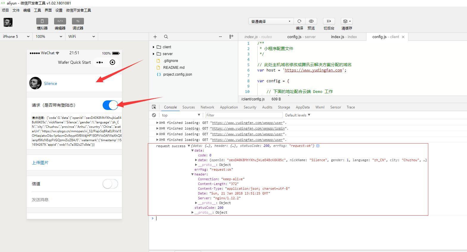 则表示配置成功。你现在可以使用开发者工具来进行联调测试啦!