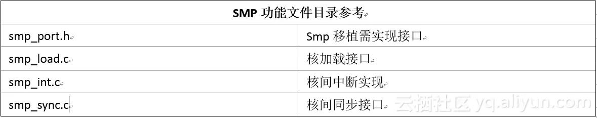 使用AliOS Things的SMP框架,可以快速在不同CPU体系下移植,以快速实现SMP功能。以下列出移植需要实现项,即可完成对应CPU的SMP功能: