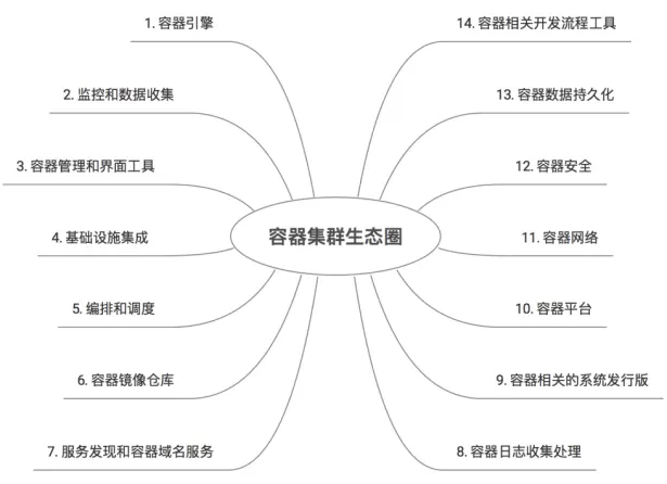 将知识分类是梳理零散信息的一种有效方式。对于容器技术的生态圈来说,其中涉及领域众多,有的项目横跨多个细分领域,有的项目则是针对特定场景需求定制的,难以对其功能类型做精确定义。不过,若仅考虑通用领域里的相关产品和工具,大致来说可以划分成14种主要类别。