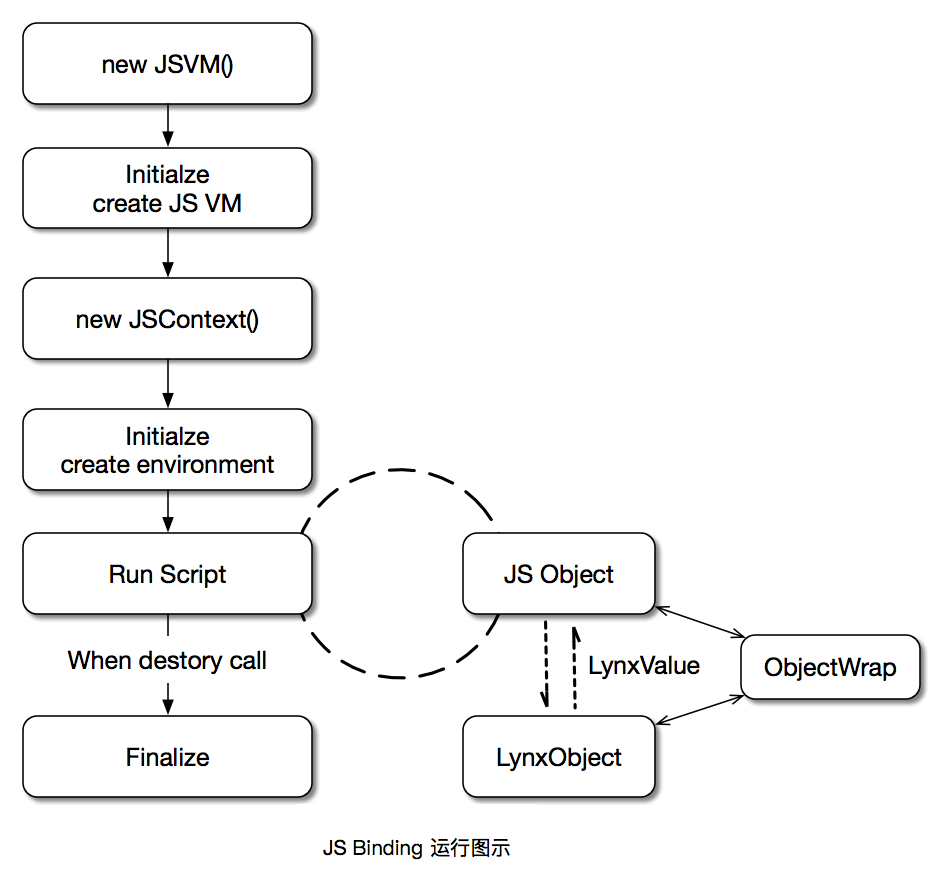 JS Binding 整体运行图示,在 Lynx 开发中,JS 引擎的具体实现或者参数转化规则对外无感知,利用 LynxObject 和 LynxValue 就可以与 JS 通信,完成 API 调用工作。LynxValue 和 JSValue 的转化均是在 JSObject 和 LynxObject 相互调用时进行。