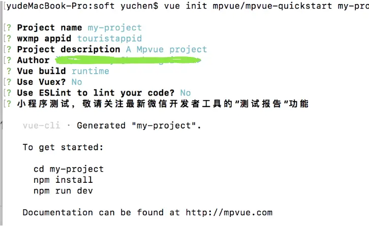 5 $ vue init mpvue/mpvue-quickstart my-project